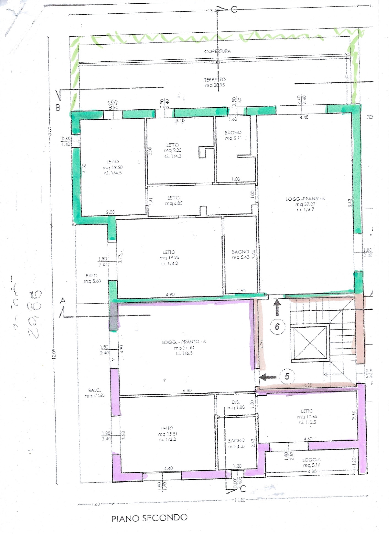 ed è composto da ingresso nel soggiorno-pranzo con angolo cottura di 37 mq,